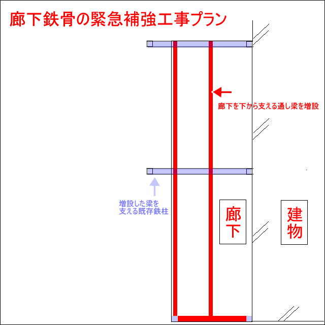 - 効果:新しい梁が、弱った廊下全体を下から支えて、崩落リスクを回避する