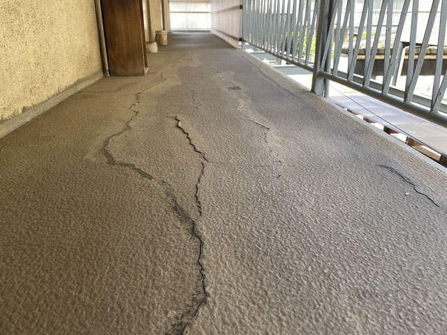 外部鉄骨の床面(モルタル)への雨水浸入を...